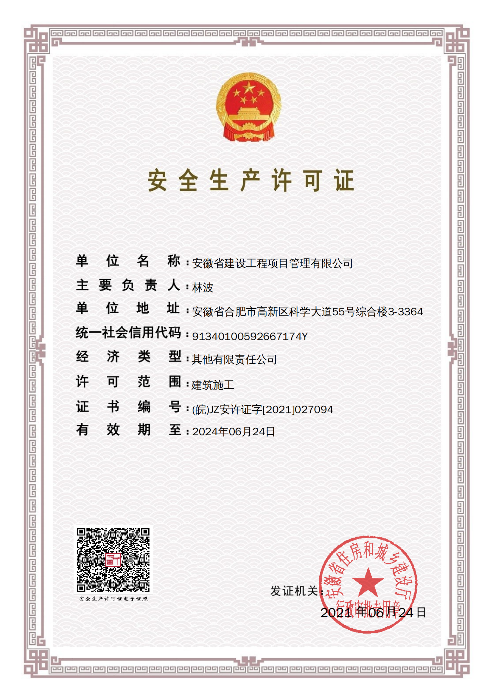 安全生产许可证书